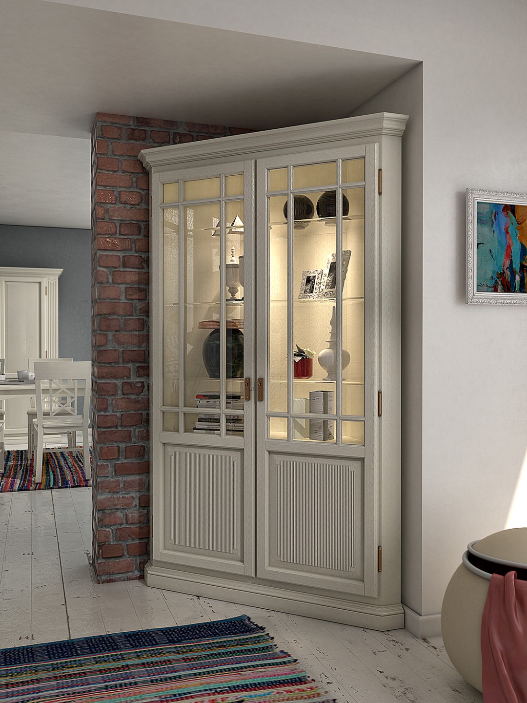 - Glas-Vitrine aus hochwertiger Pinie in zwei Farben (weitere Farben auf Anfrage mit 5% Aufpreis)