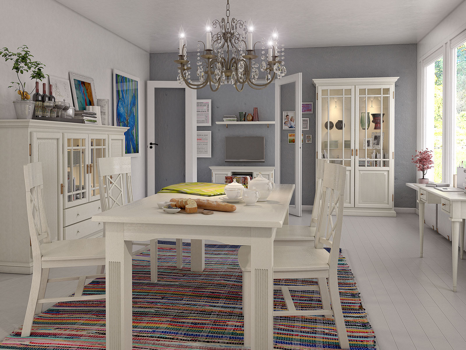 - Einheitliches Design des Landhausmöbel Programms Duett für Esszimmer, Wohnzimmer, Schlafzimmer und Garderoben