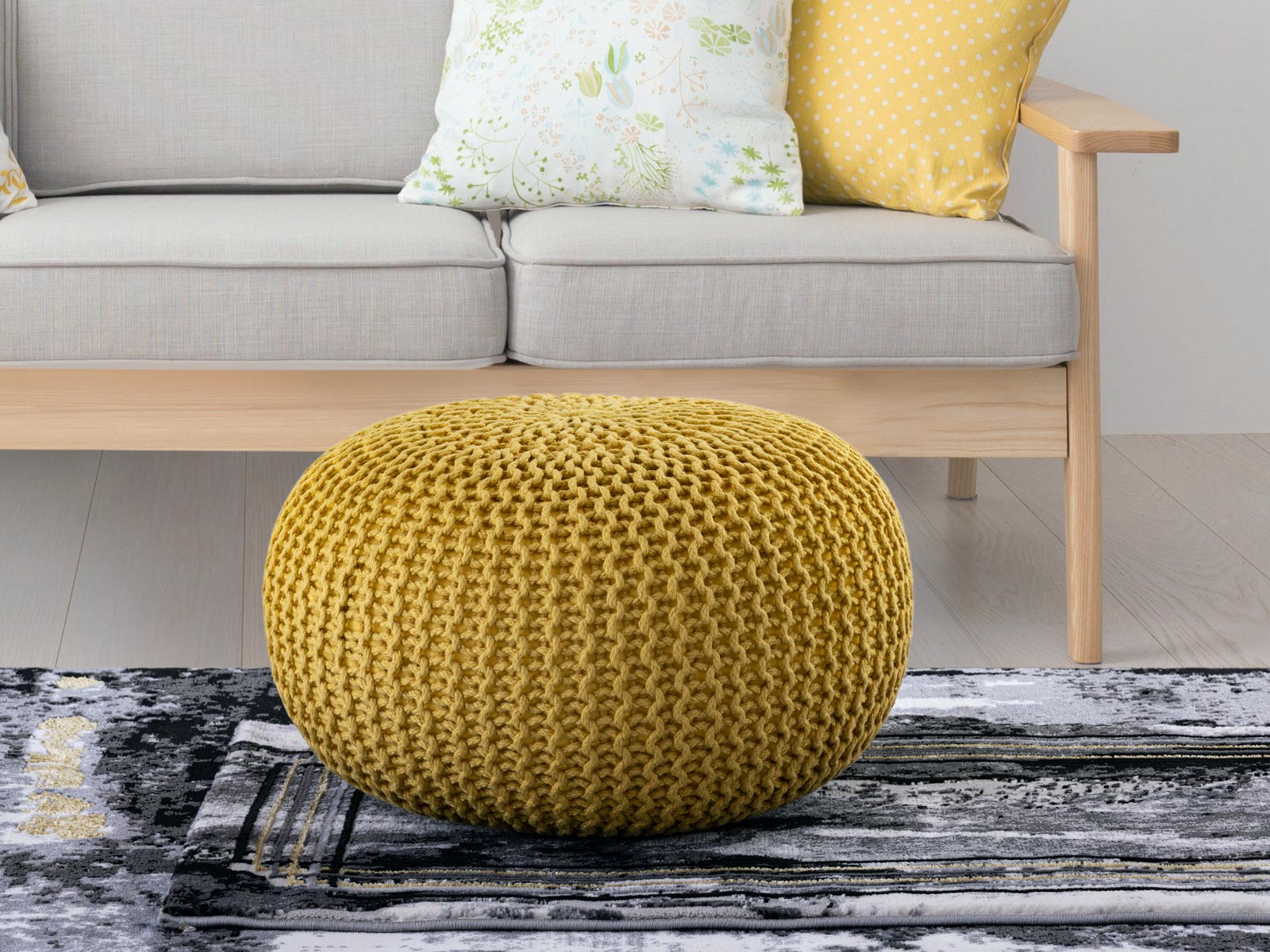 - Sitzhocker in Strick-Optik nachhaltig aus 100% recyceltem Kunststoff - Füllung leichte formbare Styroporkügelchen