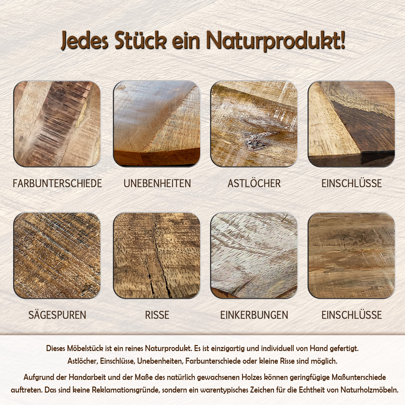 - Echtholzprodukt – Pflegehinweise für Massivholz beachten!