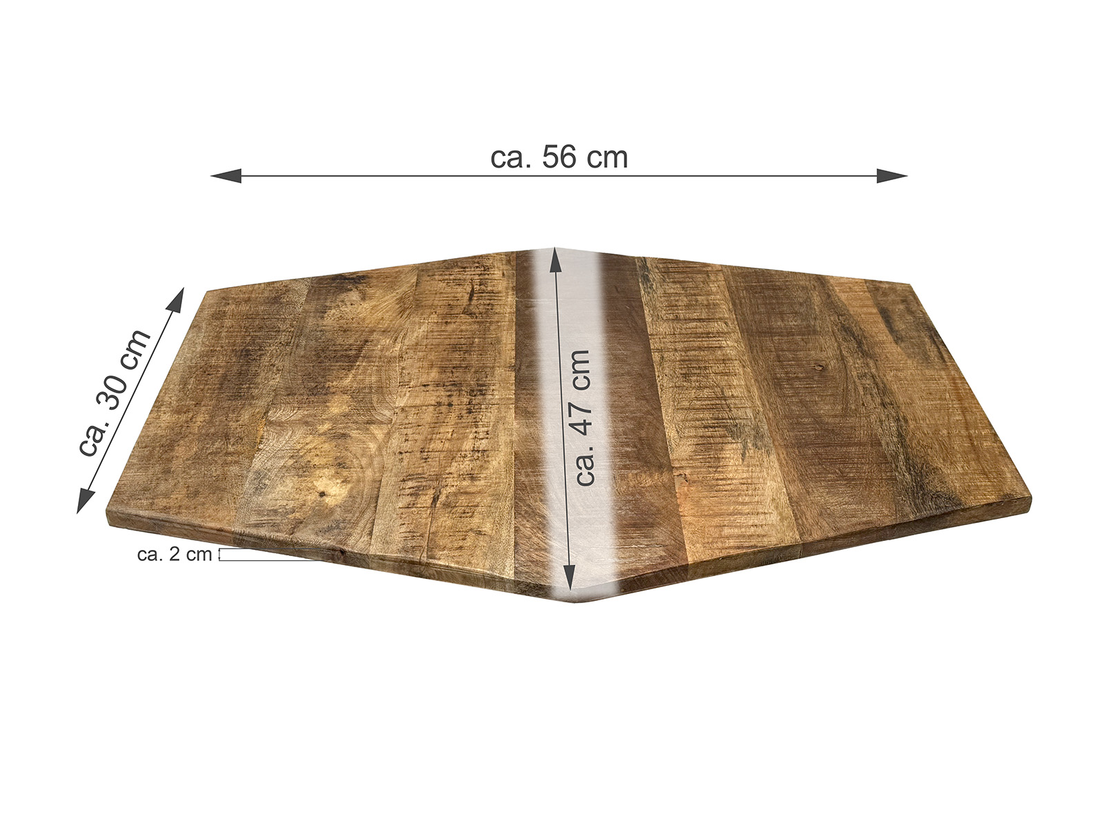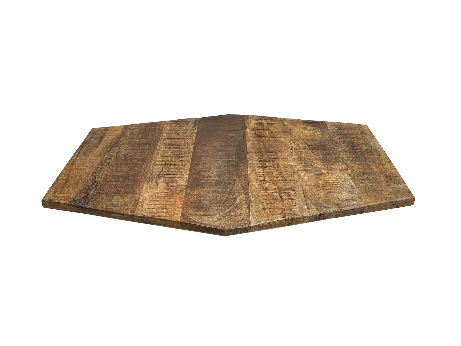 - Sechseckige Tischplatte aus recyceltem Mango-Altholz