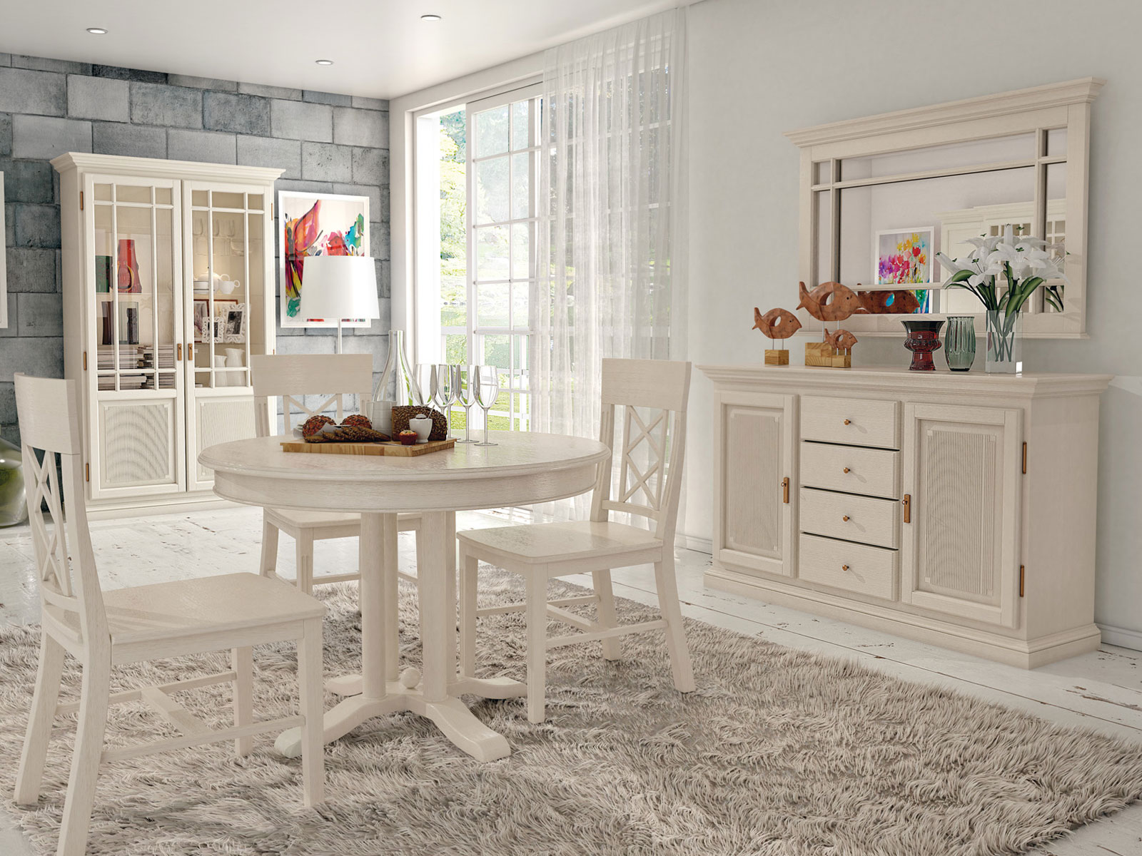 - Einheitliches Design des Landhausmöbel Programms Duett für Esszimmer, Wohnzimmer, Schlafzimmer und Garderoben