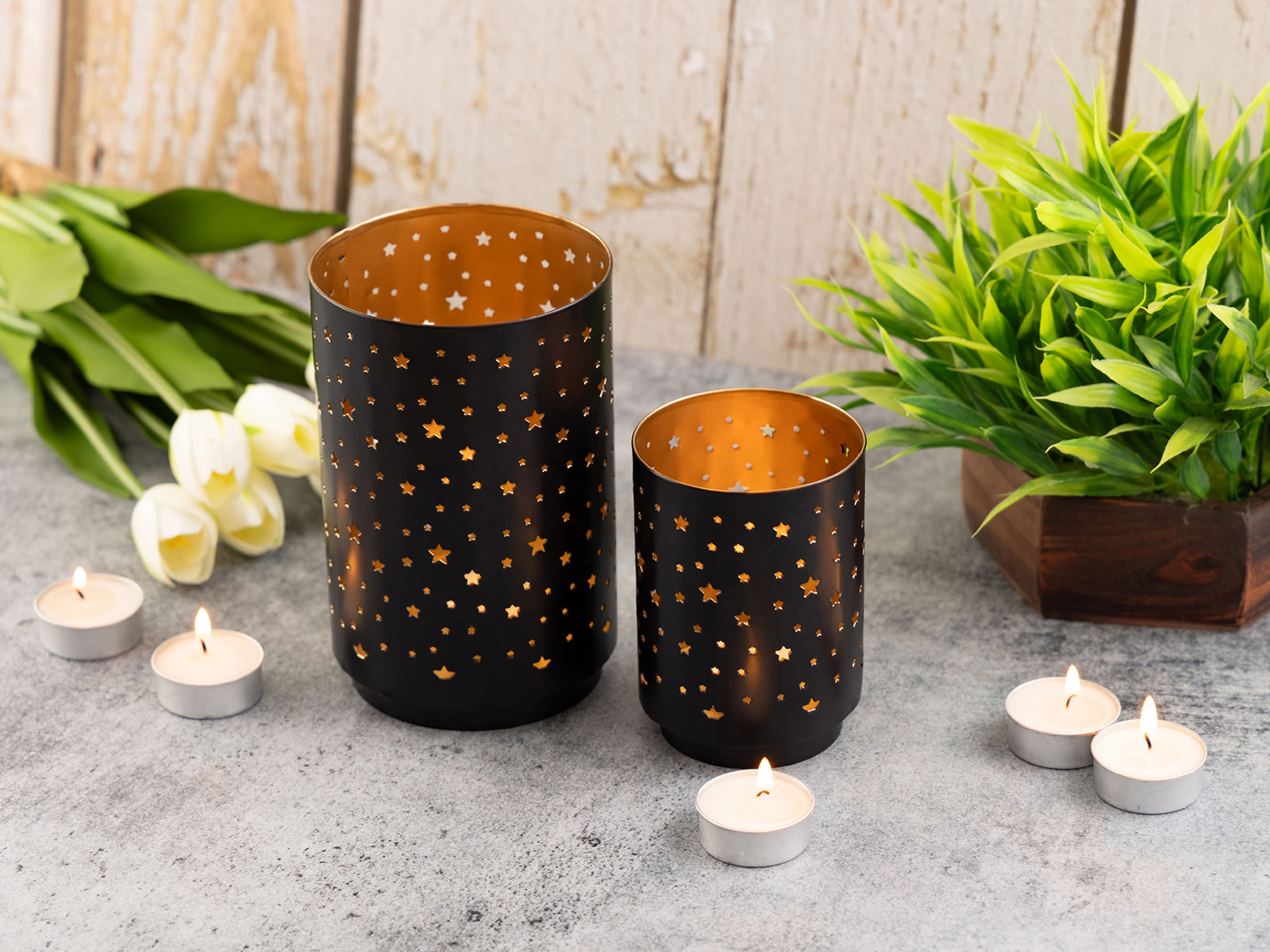 - Umfangreiches Set: Das Set enthält 2 verschieden große Kerzenhalter in zeitlos eleganter Sternen-Optik